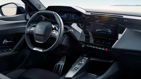 El interior del Peugeot e-308 2023 integra a la perfección la última generación del Peugeot i-Cockpit. Este puesto de conducción es reconocible por su volante compacto y calefactado, el Head-Up Display digital tridimensional y la pantalla táctil central de 10” para el sistema de infotainment. Este sistema multimedia incluye la última tecnología de conectividad i-Connect Advanced y pantallas dedicadas al sistema de propulsión totalmente eléctrico de los nuevos e-308 y e-308 SW.