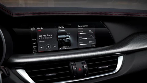 En el interior del Stelvio Competizione también hay algunas mejoras, como el salpicadero y los asientos tapizados en cuero con costuras en rojo, las lunas tintadas o los emblemas Competizione en los laterales y los reposacabezas delanteros. Por último, el sistema de sonido Harman/Kardon y la suspensión Alfa Active, con amortiguación controlada electrónicamente para adaptar instantáneamente el comportamiento del vehículo a las condiciones de conducción, completan su equipamiento de serie.