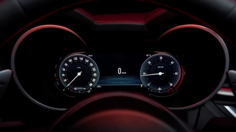 En el interior del Alfa Romeo Stelvio, la gran novedad se centra en el cuadro de instrumentos digital de 12,3”. Este nuevo componente incluye tres posibles configuraciones: Evolved, que utiliza la zona central de la pantalla, aunque mantiene sus dos cuadrantes laterales; Relax, que se centra en el confort, prescindiendo de información detallada del vehículo y de los dos cuadrantes; y Heritage, que está inspirado en modelos clásicos de Alfa Romeo de los ’60 y ’70, e incluye detalles distintivos como los números invertidos al final del velocímetro.