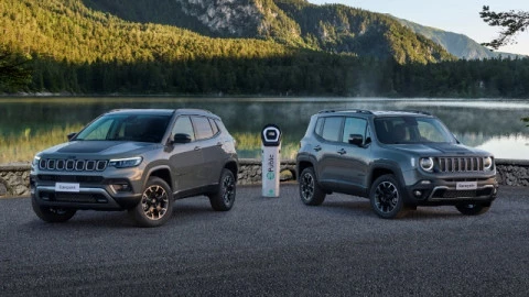 Los nuevos Jeep Renegade y Compass Upland están disponibles en las versiones 4xe híbridas enchufables. Este eficiente sistema de propulsión combina un motor de gasolina 1.3 Turbo de cuatro cilindros gestionado por un cambio automático de doble embrague y 6 velocidades, con dos motores eléctricos (uno en cada eje) y una batería de iones de litio de 11,4 kWh. El resultado es una potencia combinada de 240 CV y tracción a las cuatro ruedas.