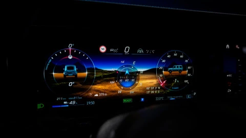 Por otro lado, la función G-Steering puede reducir significativamente el radio de giro del G 580 eléctrico cuando se circula fuera de la carretera o sobre superficies sueltas, mientras que la función “capó transparente” te permite ver lo que sucede bajo la parte delantera del vehículo a través de la pantalla multimedia.