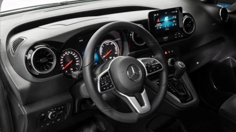 Las furgonetas eléctricas de Mercedes Benz se caracterizan por un diseño sin cambios significativos sobre la imagen de la versión con motor de combustión. Lo mismo ocurre en el interior de alta calidad de la Mercedes eCitan 2022. El nuevo núcleo funcional integra un cuadro de instrumentos con un medidor de potencia eléctrica y una gran pantalla central. También incluye las salidas de ventilación y una pantalla táctil opcional de 7” para el avanzado sistema de infotainment MBUX, disponible en la gama de Furgonetas Mercedes Benz.