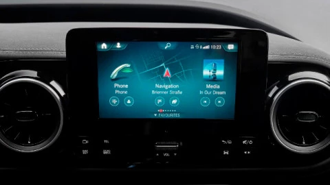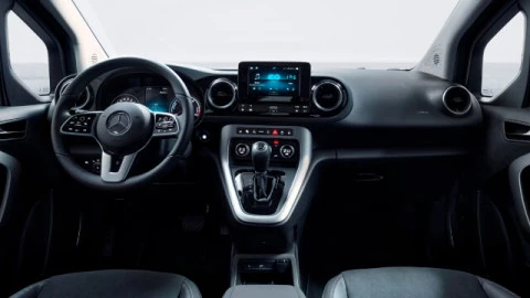 El interior del nuevo Mercedes EQT ofrece materiales de gran calidad y una construcción sólida. Elementos como el nuevo volante multifunción de cuero, los paneles de puerta y el salpicadero terminados en NEOTEX o los asientos tapizados en símil de cuero ARTICO con microfibra MICROCUT son un ejemplo de la atención al detalle de Mercedes-Benz.
