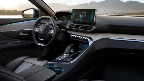 El interior del Peugeot 3008 Hybrid 180 es vanguardista y de gran calidad. El Peugeot i-Cockpit de nueva generación es el protagonista, con un volante compacto, un panel de instrumentos digital ubicado en una posición elevada para mejorar su visibilidad y una pantalla táctil central para el sistema de infotainment. De serie incluye dos opciones de tapicería de tela, así como unas llantas Detroit de 18” con acabado diamantado.