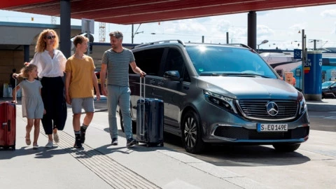 El Nuevo Mercedes EQV se basa en la elegante y lujosa Clase V. Está disponible en dos longitudes de carrocería, Larga (5,14 metros) y Extralarga (5,37 metros), y admite hasta ocho pasajeros en su interior. El volumen del espacio de carga puede alcanzar los 5.010 litros, con un compartimento portaequipajes de hasta 1.410 litros. De este modo, los pasajeros pueden viajar cómodamente, con espacio suficiente para llevar maletas incluso en los viajes más largos.