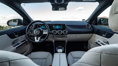 Inside the new Mercedes Benz GLA 2021, passengers will enjoy the connectivity advances of the MBUX infotainment system. Its dual 10.25" high-resolution display gives access to an almost infinite world of possibilities. Navigation system, Apple CarPlay and Android Auto, Wi-Fi hotspot, and gesture and voice control are just some of its functions. ""Hey Mercedes, what do you think of the new 2021 GLA?".
