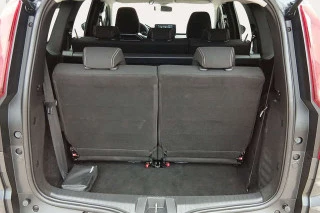 - Asientos traseros de tres plazas de tipo banco partido de orientación delantera con banqueta fija, respaldo abatible asimétrico y banqueta/respaldo plegable hacia delante