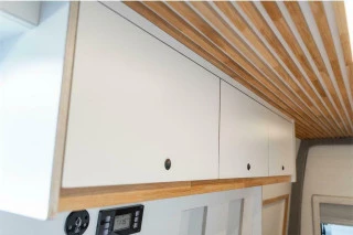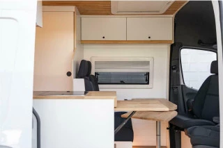 Furgoneta Sprinter camperizada L3H2 completamente nueva a estrenar, con diseño nórdico utilizando materiales de madera HPL premium y pino. Pueden viajar cómodamente 4 personas y tiene 2 plazas para dormir. Asientos equipados con cinturón de seguridad e isofix. Furgoneta camperizada de manera artesanal en nuestro taller, cuidando cada detalle. Pregúntenos para mayor información a través del formulario de contacto.