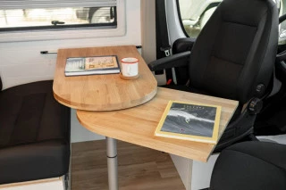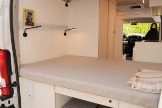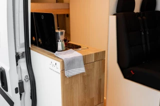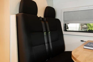 Furgoneta camperizada L3H2 de diseño nórdico utilizando materiales de madera HPL premium y roble para el acabado. Pueden viajar cómodamente 4 pasajeros y tiene 4 plazas para dormir. Asientos equipados con cinturón de seguridad e isofix. Furgoneta camperizada de manera artesanal en nuestro taller, cuidando cada detalle. Pregúntenos para mayor información a través del formulario de contacto.