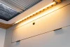 Todo el interior de la furgoneta camper está equipado con iluminación LED de intensidad regulable e independientes, teniendo luz cálida tanto en el techo como en el bajo mobiliario, consiguiendo un ambiente acogedor. También tiene luz LED en el exterior situada en la puerta lateral corredera de la camper.