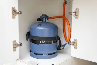 La bombona de gas se ubica en la zona del maletero, cuyo control se puede realizar a través de una llave de paso. También existe un espacio para ubicar la bombona de repuesto en la zona del maletero.