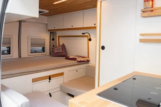 Nuestro diseño de furgoneta camper de 3 plazas equipada con las mejores marcas de accesorios de camperización, te hará sentir como en tu casa gracias a la optimización del espacio y su diseño nórdico que la hace ser única y exclusiva en el mercado.